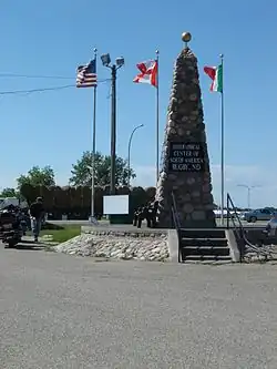 - ↑ (en) « Community fact survey : Rugby, N. Dak., geographical center of North America », sur www.digitalhorizonsonline.org (consulté le ).
