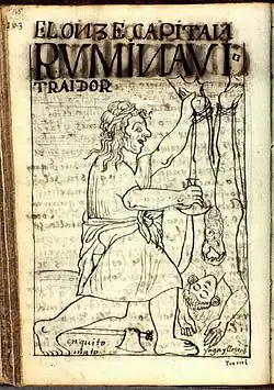 Rumiñahui (« œil de pierre » en quechua) était un grand général inca. Il lutta contre les Espagnols après la mort d'Atahualpa.