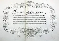 - Les Fidèles tableaux de l'art d'écrire par colonnes de démonstrations... Dédié à Monseigneur de Maupeou... Paris : J. Fr. Chereau, [ca. 1767-1768]. 2°, 31 pl. gr. par Baisiez (Paris BNF, Paris BHVP, Cambridge (MA) HUL). Cat. Jammes no 67. Avec le portrait de l'auteur gravé par Romanet d'après Forville Voir.