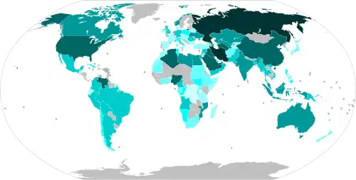 En 2012, l'énergie nucléaire fournit 13 % de l'électricité mondiale totale[22] contre 10 % en 2021[23].