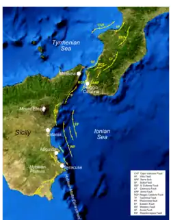 La partie sud-ouest de la Calabre ainsi que la partie est de la Sicile sont des zones actives d'extension de la croûte terrestre au sein de la zone de rift siculo-calabraise. Cette longue zone de 350 kilomètres s'est développée avec la chaîne des Apennins au Pléistocène.