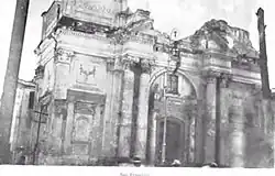 Les édifices publics comme les écoles, les églises, les théâtres et les musées sont particulièrement touchés et plusieurs débris continuent de joncher les trottoirs adjacents à ceux-ci.