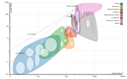 Un diagramme d'Ashby, du nom de Michael Ashby de l'université de Cambridge, est un nuage de points qui affiche au moins deux propriétés de nombreux matériaux ou classes de matériaux[3]. Ces diagrammes sont utiles pour comparer le rapport entre différentes propriétés. Pour l'exemple de la partie rigide / légère discutée ci-dessus, le module de Young est donné sur un axe et la masse volumique sur l'autre axe, un point de données sur le diagramme représente chaque matériau candidat. Sur un tel tracé, il est facile de trouver non seulement le matériau ayant la rigidité la plus élevée, ou celui ayant la masse volumique la plus faible, mais celui qui présente le meilleur rapport . L'utilisation d'une échelle logarithmique sur les deux axes facilite la sélection du matériau ayant la meilleure rigidité de plaque .