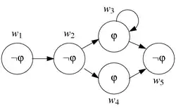 De manière informelle, la formule de la logique modale est définie comme étant vraie dans un monde w si et seulement si est vraie dans tous les mondes accessibles depuis w. La formule est vraie dans un monde w si et seulement s'il existe un monde w' accessible depuis w tel que soit vraie dans le monde w' .