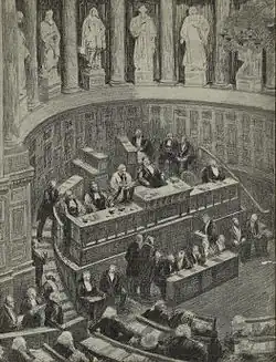 Lors de la crise du 16 mai 1877, le Sénat est consulté par le Maréchal de Mac Mahon et donne son accord sur le projet de dissolution de la chambre des députés le , par 149 voix contre 130[4], et ensuite décrétée par Mac-Mahon le .