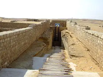 Cette voie traversait donc la nécropole antique sur plus d'un kilomètre, partant de la colline du Bubastéïon, longeant le complexe funéraire de Téti, laissant sur sa gauche ceux d'Ouserkaf et de Djéser, elle s'enfonçait toujours plus à l'ouest dans le désert.