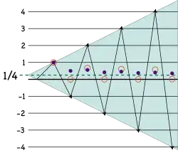 La somme de Borel de 1 − 2 + 3 − 4 + … est alors[11] :