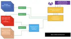 Les architectures SIEM peuvent varier selon le fournisseur, généralement, les composants essentiels sont les suivants[11] :