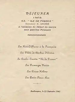 - ↑ « A bord de l'"ile-de-france" (1927-1958) avec georges remon et ses confreres », sur hautetfort.com (consulté le ).