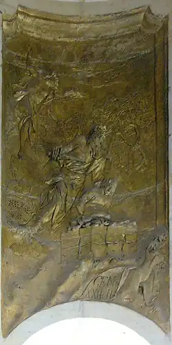 Ce relief du XVIIIe siècle montrant le sacrifice d'Isaac est situé dans une chapelle au sein de la Colonne de la Sainte Trinité d'Olomouc. Il fait partie d'une série dont la thématique principal est le sacrifice à Dieu et qui s'achève avec la crucifixion du Christ.