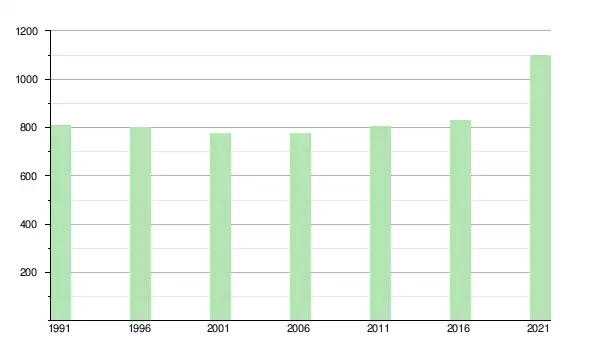 3,1 %) entre 2011 et 2016. La densité brute de la population est de 20,4 habitants/km2 pour l'ensemble de la municipalité. Le parc résidentiel s'élève à 346 logements privés, dont 331 sont occupés par des résidents habituels[7]. La population locale semble fluctuante à long terme, depuis 1991[8]. La population augmente de façon marquée entre 2016 et 2021, soit de 233 personnes, pour atteindre un total de 1 064 habitants.