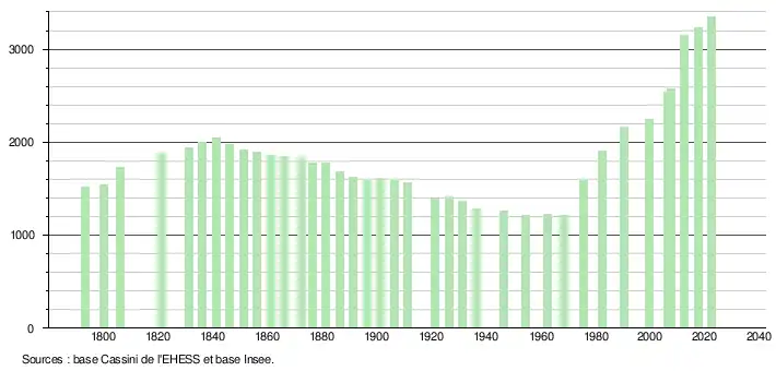 3 352 hab. (2022 en évolution de +3,39 % par rapport à 2016)