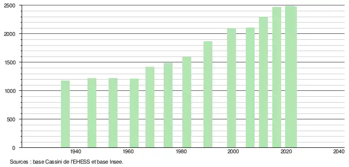 - ↑ Fiches Insee - Populations de référence de la commune pour les années 2006, 2007, 2008, 2009, 2010, 2011, 2012, 2013, 2014, 2015, 2016, 2017, 2018, 2019, 2020, 2021 et 2022.