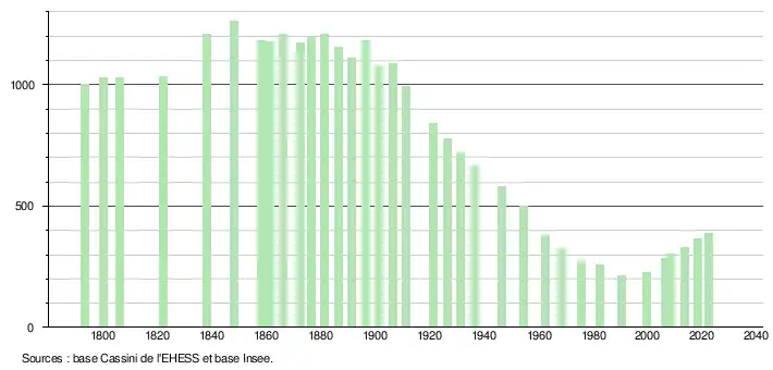 - ↑ Fiches Insee - Populations de référence de la commune pour les années 2006, 2007, 2008, 2009, 2010, 2011, 2012, 2013, 2014, 2015, 2016, 2017, 2018, 2019, 2020, 2021 et 2022.