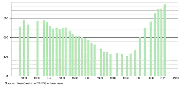 - ↑ Fiches Insee - Populations de référence de la commune pour les années 2006, 2007, 2008, 2009, 2010, 2011, 2012, 2013, 2014, 2015, 2016, 2017, 2018, 2019, 2020, 2021 et 2022.
