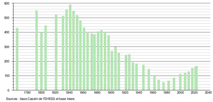 - ↑ Fiches Insee - Populations de référence de la commune pour les années 2006, 2007, 2008, 2009, 2010, 2011, 2012, 2013, 2014, 2015, 2016, 2017, 2018, 2019, 2020, 2021 et 2022.