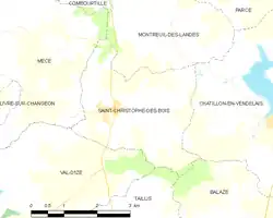 Les communes limitrophes de Saint-Christophe-des-Bois sont, en commençant par le nord et en suivant le sens des aiguilles d'une montre : Montreuil-des-Landes, Châtillon-en-Vendelais, Balazé, Taillis, Val-d'Izé et Mecé.