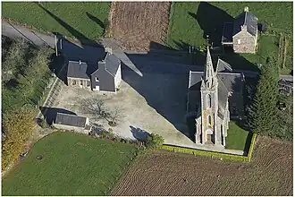 • Le monument aux morts, en contrebas de cette église, construit avec les pierres de la chapelle précédente, sur le lieu de celle-ci, et où se tiennent les pèlerinages.