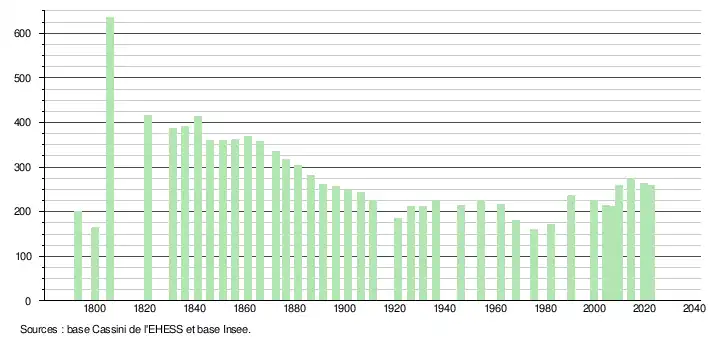 - ↑ Population municipale de référence en vigueur au 1er janvier 2025, millésimée 2022, définie dans les limites territoriales en vigueur au 1er janvier 2024, date de référence statistique : 1er janvier 2022.