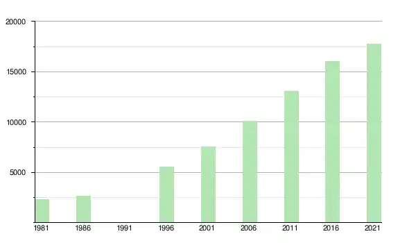 Le recensement de 2011 y dénombre 13 080 habitants, soit 29 % de plus qu'en 2006[9].