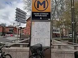 Bouche de métro sud sur la place intérieure Saint-Cyprien. | ||||||||