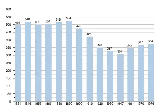 - Sources:INS, Rem:1831 jusqu'en 1970=recensements, 1976= nombre d'habitants au 31 décembre