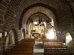 - Église Saint-Barthélémy, inscrite au titre des monuments historiques par arrêté du [31]. Cette église, qui présente un plan au sol en forme de croix latine, comporte : une nef à voûte en berceau, à deux travées délimitées par des arcs-doubleaux ; un avant-chœur surmonté d’un clocher carré du XIXe siècle, résultat de la transformation d'un ancien clocher-mur datant de 1662 ; un chœur, revoûté au XVIe siècle, se terminant par un mur droit, et doté d’un décor renaissance ; enfin, deux chapelles latérales s’ouvrant sur la première travée de la nef, celle au nord ayant été ajoutée au XVIIe siècle et celle du sud au XIXe siècle. La porte, pratiquée dans le flanc sud de l’édifice, est du style de reconstruction du XVIe siècle. Un ossuaire a été mis au jour sous la chapelle nord, attestant que le lieu était déjà occupé antérieurement au XIIe siècle ;