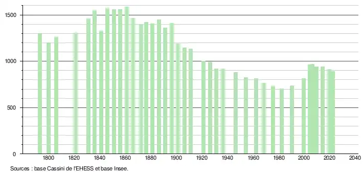 - ↑ Fiches Insee - Populations de référence de la commune pour les années 2006, 2007, 2008, 2009, 2010, 2011, 2012, 2013, 2014, 2015, 2016, 2017, 2018, 2019, 2020, 2021 et 2022.