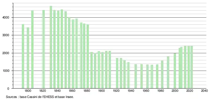 - ↑ Fiches Insee - Populations de référence de la commune pour les années 2006, 2007, 2008, 2009, 2010, 2011, 2012, 2013, 2014, 2015, 2016, 2017, 2018, 2019, 2020, 2021 et 2022.