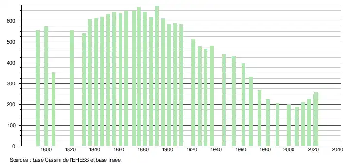 - ↑ Fiches Insee - Populations de référence de la commune pour les années 2006, 2007, 2008, 2009, 2010, 2011, 2012, 2013, 2014, 2015, 2016, 2017, 2018, 2019, 2020, 2021 et 2022.