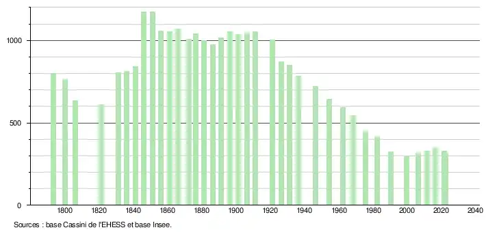 - ↑ Fiches Insee - Populations de référence de la commune pour les années 2006, 2007, 2008, 2009, 2010, 2011, 2012, 2013, 2014, 2015, 2016, 2017, 2018, 2019, 2020, 2021 et 2022.
