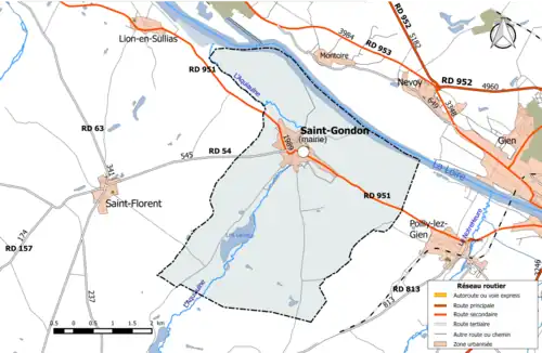 Carte de la commune de Saint-Gondon et des communes limitrophes