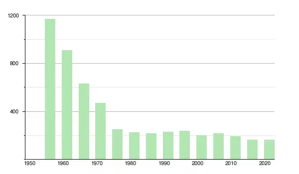L'église, fortement détériorée par le temps, est désaffectée en 1986[1] et est démolie en 1989 à la suite de la découverte de fissures dans les fondations du lieu de culte qui menace la structure de s'écrouler[4]. L'école primaire Albert-Morin a fermé ses portes en [5]. La paroisse catholique est dissoute le et son territoire est annexée à la paroisse voisine de Saint-Adelme[1].