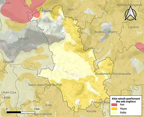 Les communes les plus proches[Note 2] sont[6] : Bussunarits-Sarrasquette (1,7 km), Aincille (2,3 km), Bustince-Iriberry (2,8 km), Caro (2,8 km), Ahaxe-Alciette-Bascassan (2,8 km), Ispoure (3,4 km), Saint-Jean-Pied-de-Port (3,5 km), Jaxu (3,6 km).