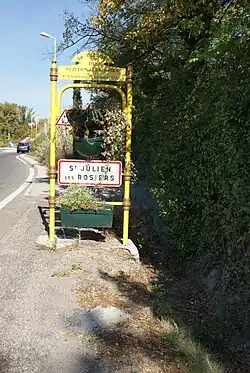 En 1955, la commune change de nom pour devenir Saint-Julien-les-Rosiers[21]. Né en 1955 du mariage entre le village de Saint-Julien et le hameau des Rosiers[réf. nécessaire] ; d’autres hameaux composent le village : Caussonille, Courlas, La Roque, Arbousse. Saint-Julien est le village le plus ancien de la commune. Vers 1900, l'amélioration du CD 904, a permis aux Rosiers de se développer. Les Rosiers correspond à un écart de l'ancienne paroisse de Saint-Julien.