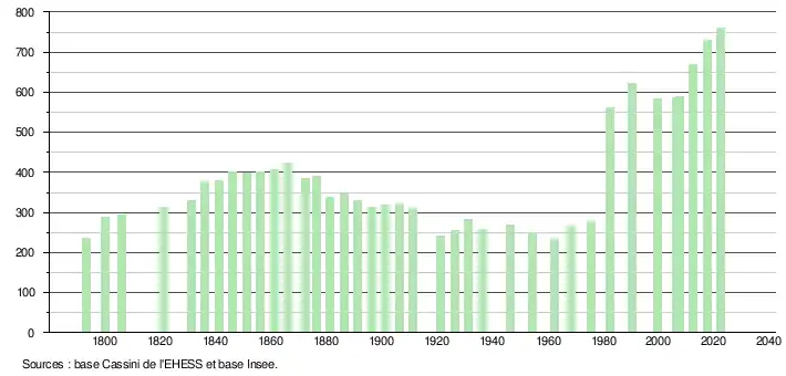 (Sources : Ldh/EHESS/Cassini jusqu'en 1999[15] puis Insee à partir de 2006[16].)
