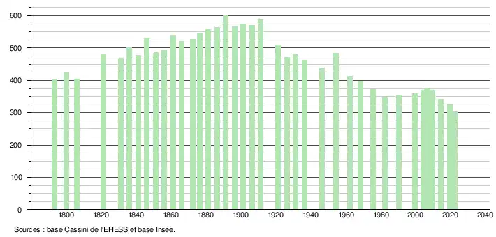 - ↑ Fiches Insee - Populations de référence de la commune pour les années 2006, 2007, 2008, 2009, 2010, 2011, 2012, 2013, 2014, 2015, 2016, 2017, 2018, 2019, 2020, 2021 et 2022.