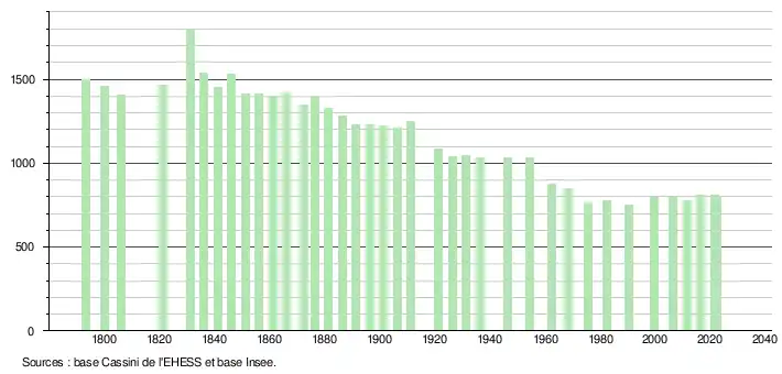 - ↑ Fiches Insee - Populations de référence de la commune pour les années 2006, 2007, 2008, 2009, 2010, 2011, 2012, 2013, 2014, 2015, 2016, 2017, 2018, 2019, 2020, 2021 et 2022.