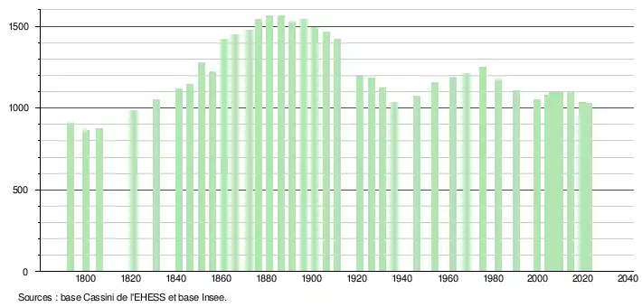 - ↑ Fiches Insee - Populations de référence de la commune pour les années 2006, 2007, 2008, 2009, 2010, 2011, 2012, 2013, 2014, 2015, 2016, 2017, 2018, 2019, 2020, 2021 et 2022.