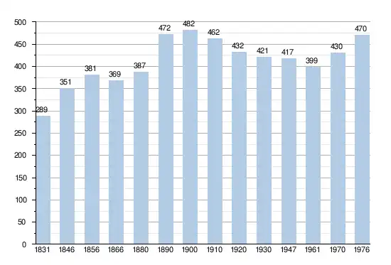- Sources : INS, Rem. : 1831 jusqu'en 1970 = recensements, 1976 = nombre d'habitants au 31 décembre.