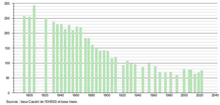 - ↑ Population municipale de référence en vigueur au 1er janvier 2025, millésimée 2022, définie dans les limites territoriales en vigueur au 1er janvier 2024, date de référence statistique : 1er janvier 2022.