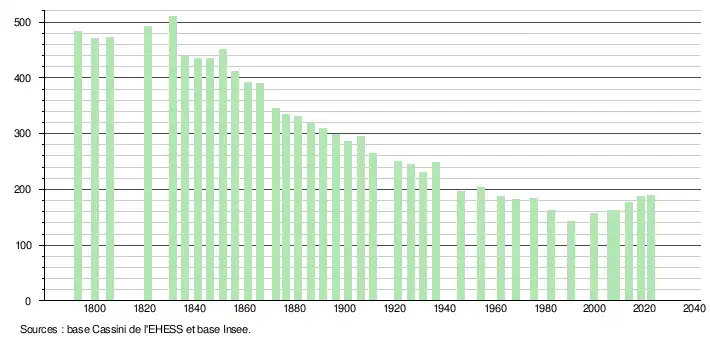 - ↑ Population municipale de référence en vigueur au 1er janvier 2025, millésimée 2022, définie dans les limites territoriales en vigueur au 1er janvier 2024, date de référence statistique : 1er janvier 2022.