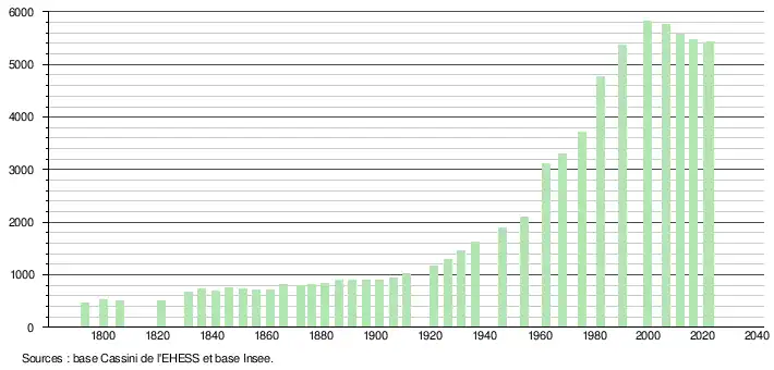 - ↑ Population municipale de référence en vigueur au 1er janvier 2025, millésimée 2022, définie dans les limites territoriales en vigueur au 1er janvier 2024, date de référence statistique : 1er janvier 2022.