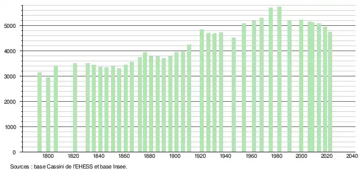 - ↑ Fiches Insee - Populations de référence de la commune pour les années 2006, 2007, 2008, 2009, 2010, 2011, 2012, 2013, 2014, 2015, 2016, 2017, 2018, 2019, 2020, 2021 et 2022.