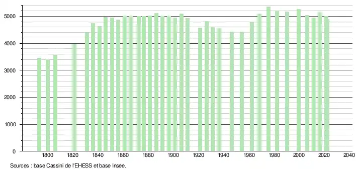 - ↑ Population municipale de référence en vigueur au 1er janvier 2025, millésimée 2022, définie dans les limites territoriales en vigueur au 1er janvier 2024, date de référence statistique : 1er janvier 2022.