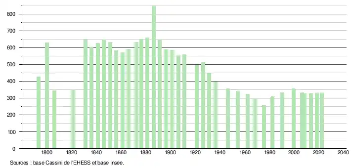 331 hab. (2022 en évolution de +1,53 % par rapport à 2016)