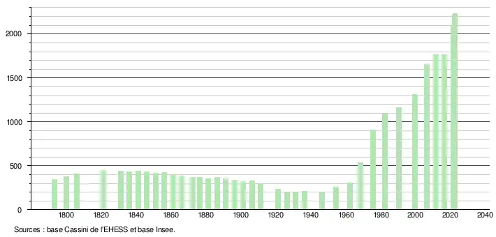 - ↑ Fiches Insee - Populations de référence de la commune pour les années 2006, 2007, 2008, 2009, 2010, 2011, 2012, 2013, 2014, 2015, 2016, 2017, 2018, 2019, 2020, 2021 et 2022.