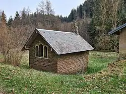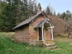 - Située le long du ruisseau du Val et à proximité de l'étang de la Gagère, cette petite chapelle en pierres de grès rouge est dotée, comme son porche antérieur, d'un toit d'ardoise, en bâtière, d'une porte en fer forgé et d'une fenêtre trigéminée éclairant le chevet[24].