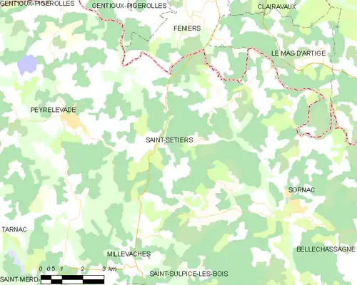 Saint-Setiers est limitrophe de quatre autres communes, dont une dans le département de la Creuse.