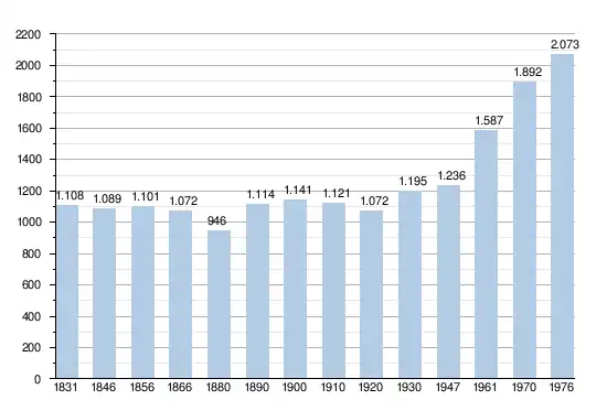- Sources : INS, Rem. : 1831 jusqu'en 1970 = recensements, 1976 = nombre d'habitants au 31 décembre.